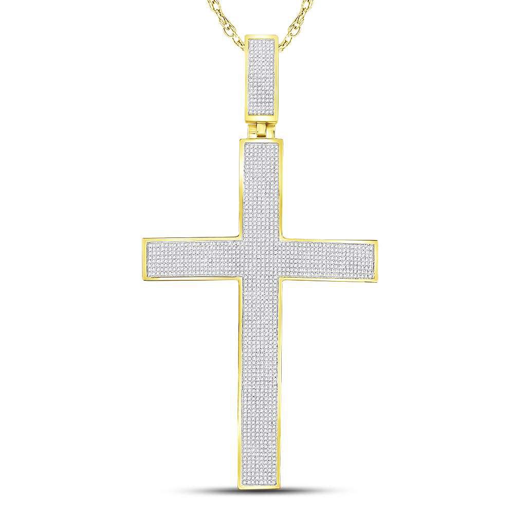 10kt Yellow Gold Mens Round Diamond Roman Cross Charm Pendant 2-1/5 Cttw.
