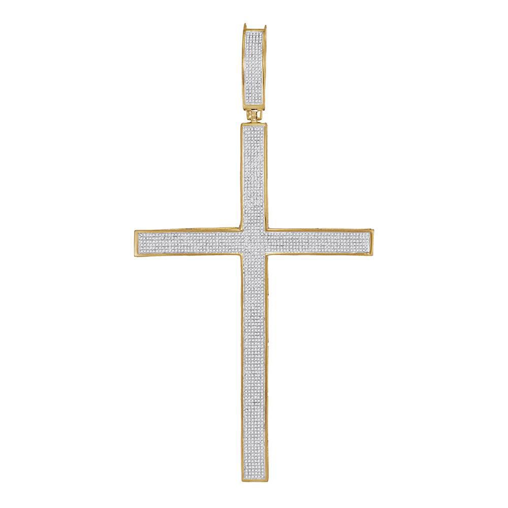 Round Diamond Roman Cross Large Charm Pendant 2 Cttw 10KT Yellow Gold