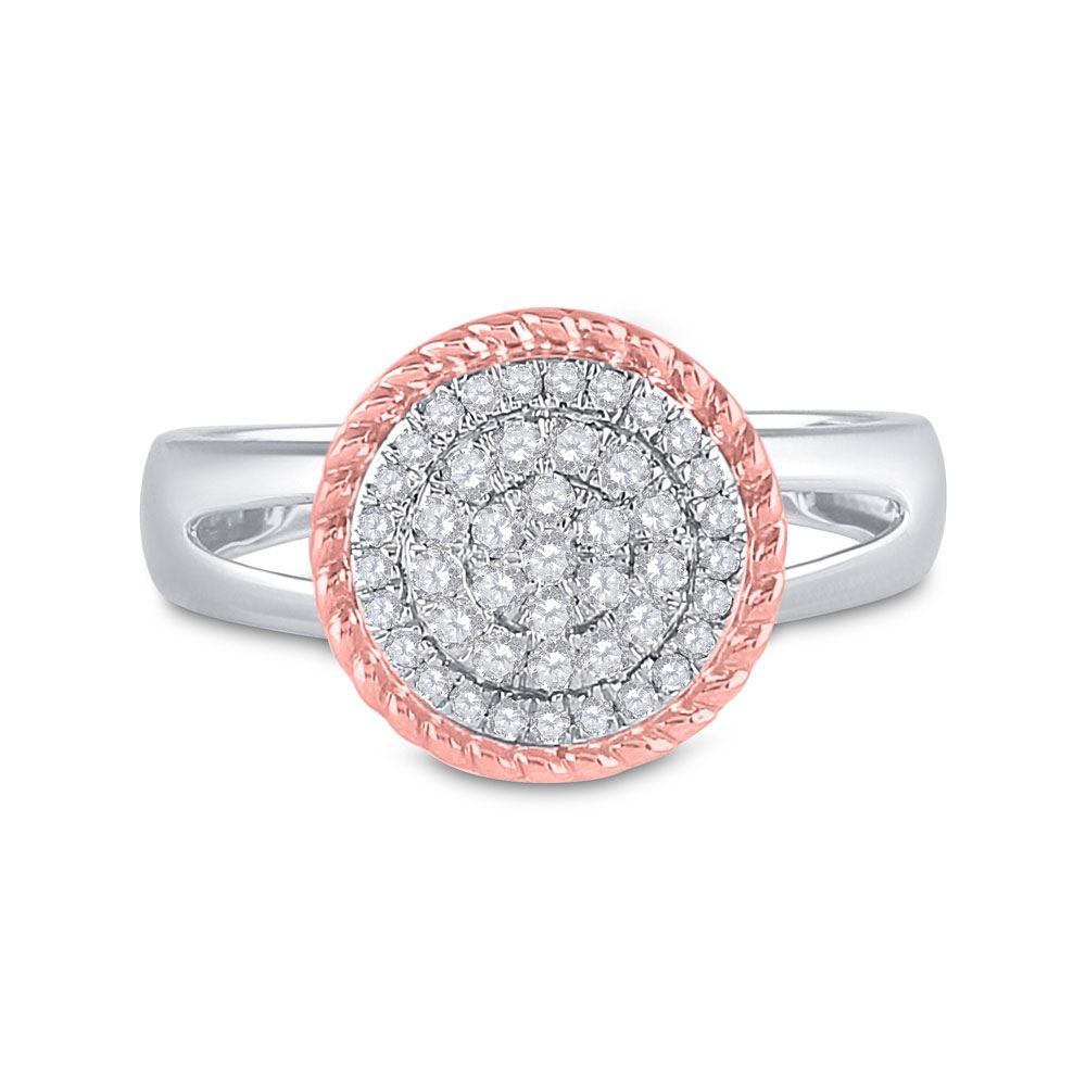 Round Diamond Rope Flower Cluster Ring 1/3 Cttw 10KT Two-tone Gold