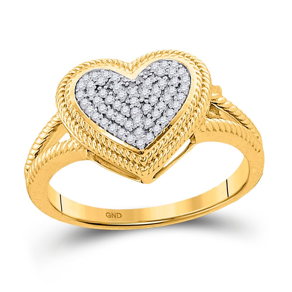 10kt Yellow Gold Womens Round Diamond Rope Heart Cluster Ring 1/6 Cttw.