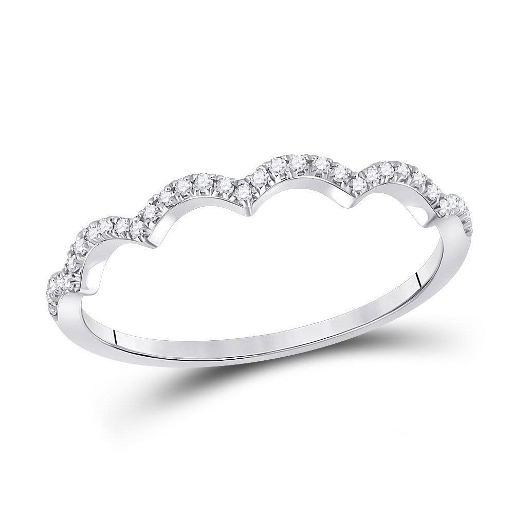Round Diamond Scalloped Stackable Band Ring 1/10 Cttw 10KT White Gold