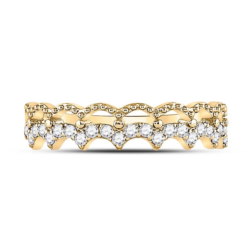 10kt Yellow Gold Womens Round Diamond Scalloped Stackable Band Ring 1/4 Cttw.