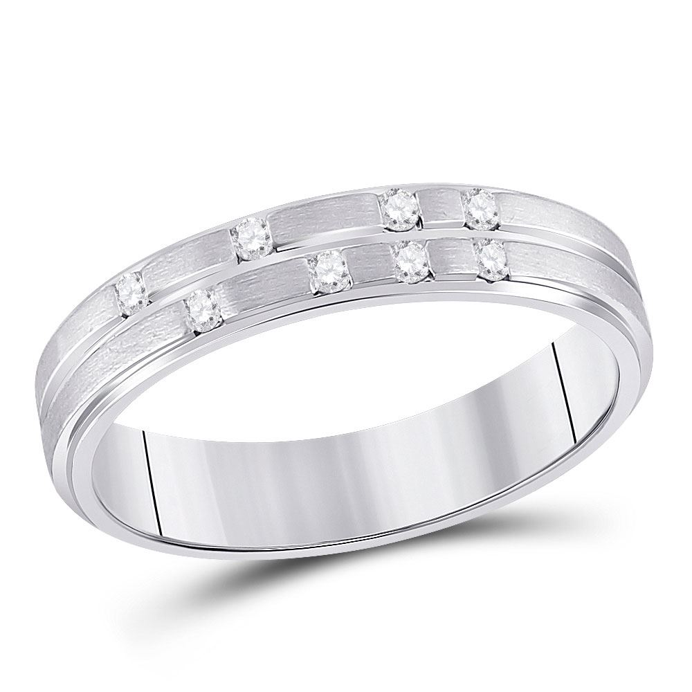 14kt White Gold Womens Round Diamond Scattered Band Ring 1/10 Cttw.