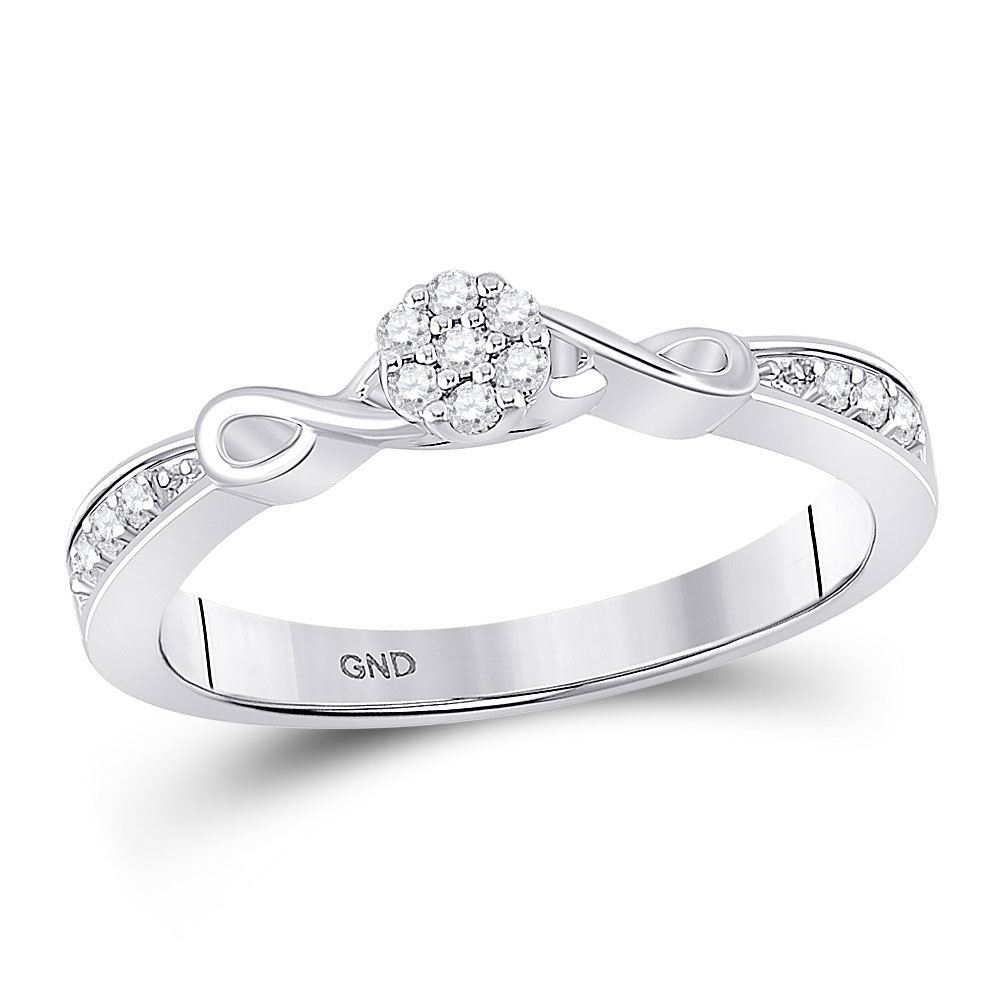 Round Diamond Scroll Flower Cluster Ring 1/6 Cttw 10KT White Gold