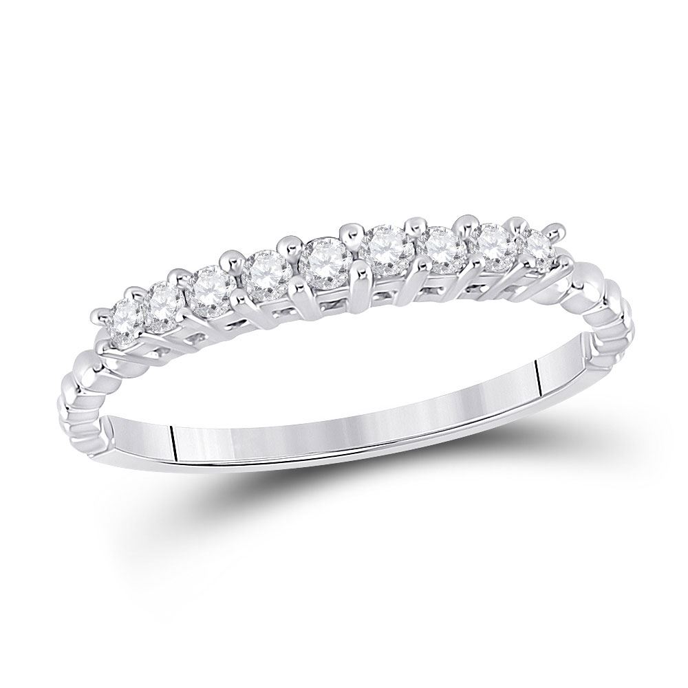 10kt White Gold Womens Round Diamond Single Row Band Ring 1/4 Cttw.