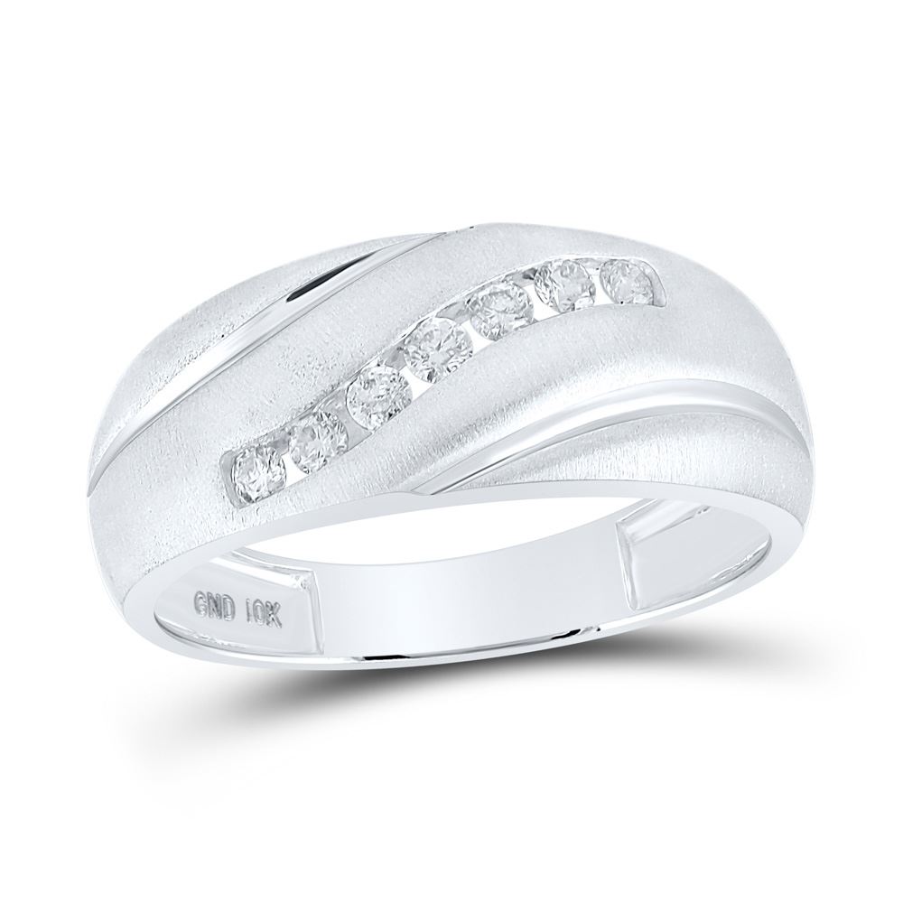 10kt White Gold Mens Round Diamond Single Row Band Ring 1/4 Cttw.