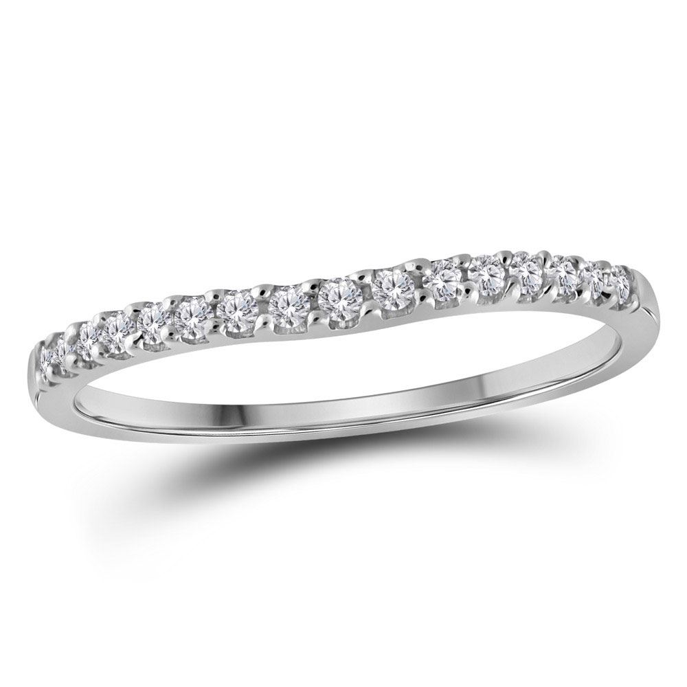 10kt White Gold Womens Round Diamond Single Row Contoured Wedding Band 1/6 Cttw.