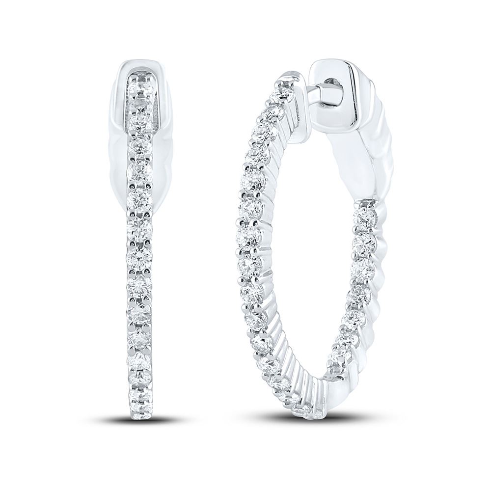 Round Diamond Single Row Hoop Earrings 1/2 Cttw 10KT White Gold