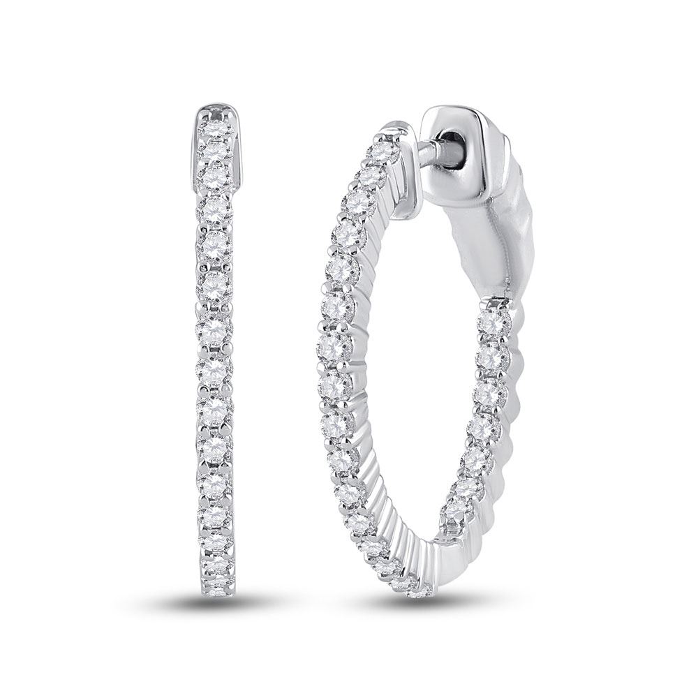 Round Diamond Single Row Hoop Earrings 1/2 Cttw 14KT White Gold