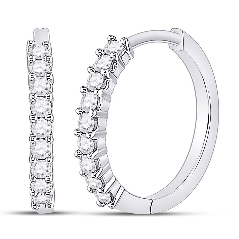 10kt White Gold Womens Round Diamond Single Row Hoop Earrings 1/4 Cttw.