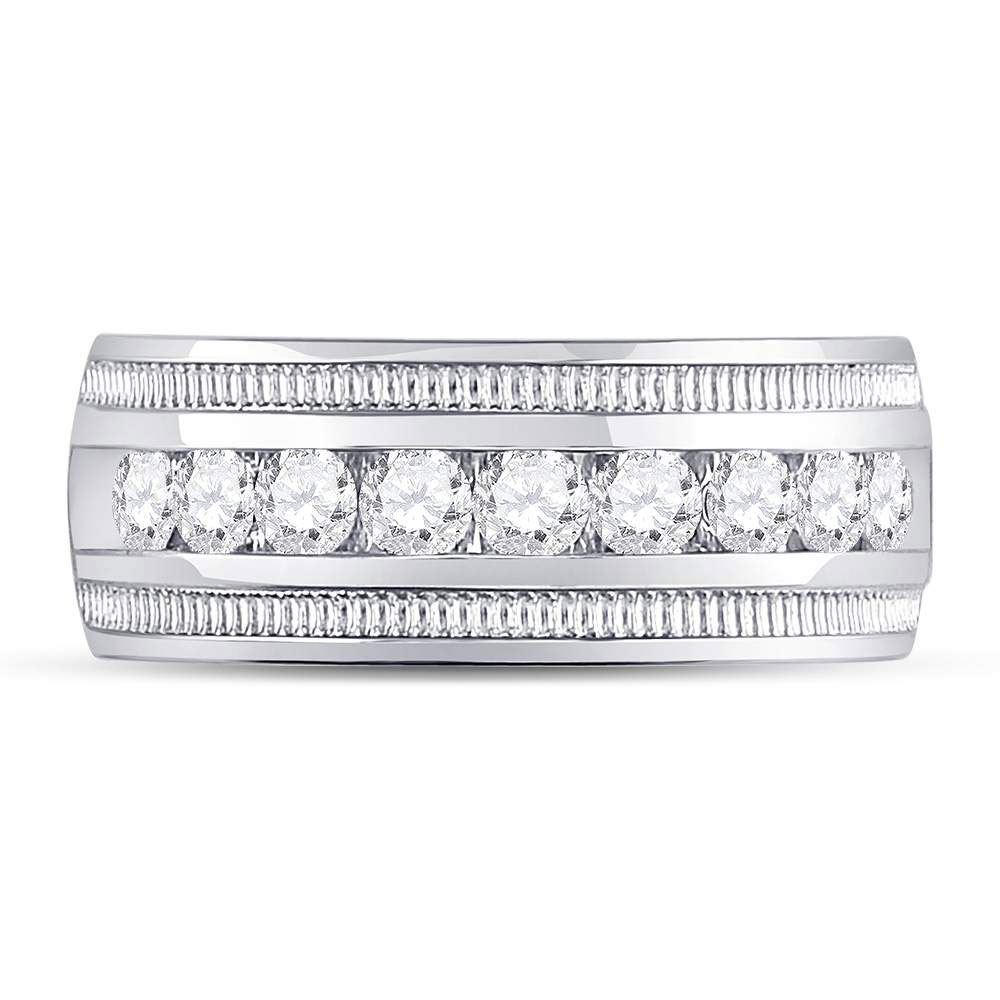 14kt White Gold Mens Round Diamond Single Row Textured Wedding Band Ring 1 Cttw.