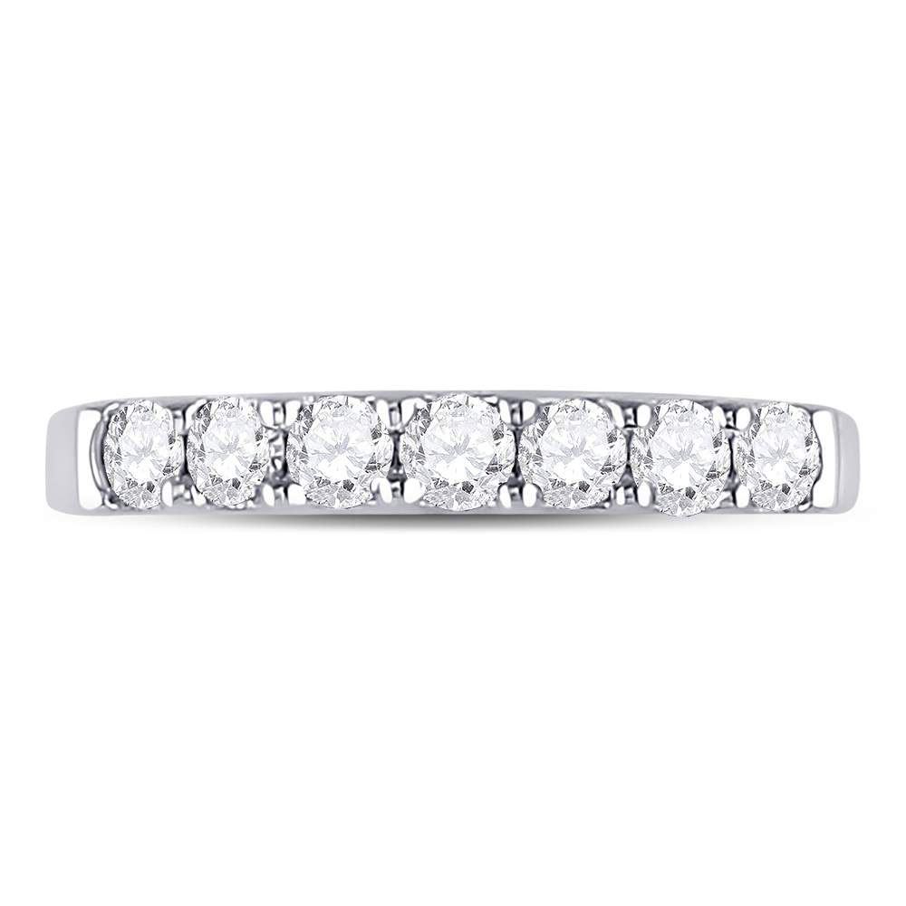 14kt White Gold Womens Round Diamond Single Row Wedding Band 1/2 Cttw.