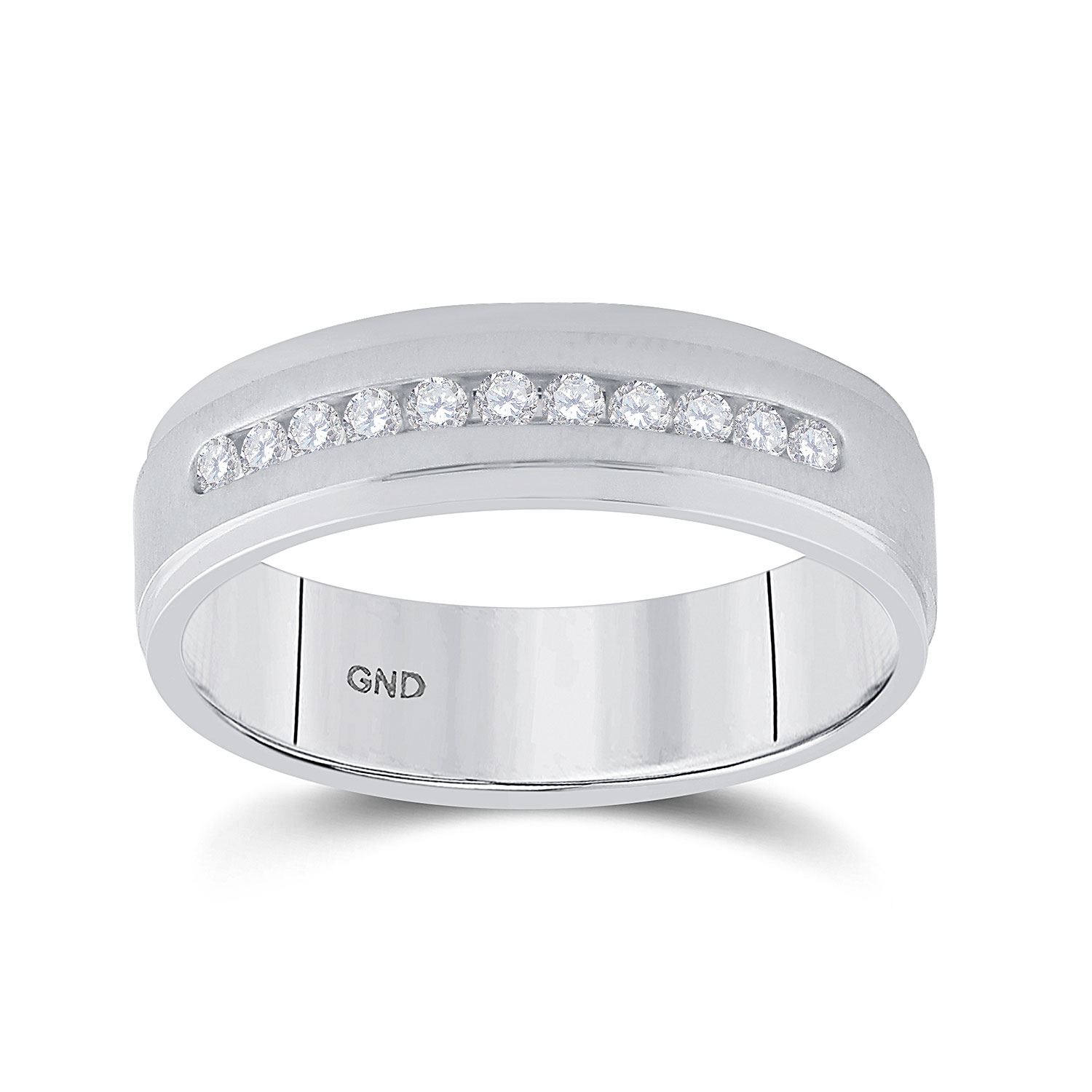 14kt White Gold Mens Round Diamond Single Row Wedding Band Ring 1/4 Cttw.
