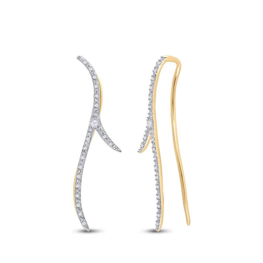 10kt Yellow Gold Womens Round Diamond Slender Climber Earrings 1/5 Cttw.