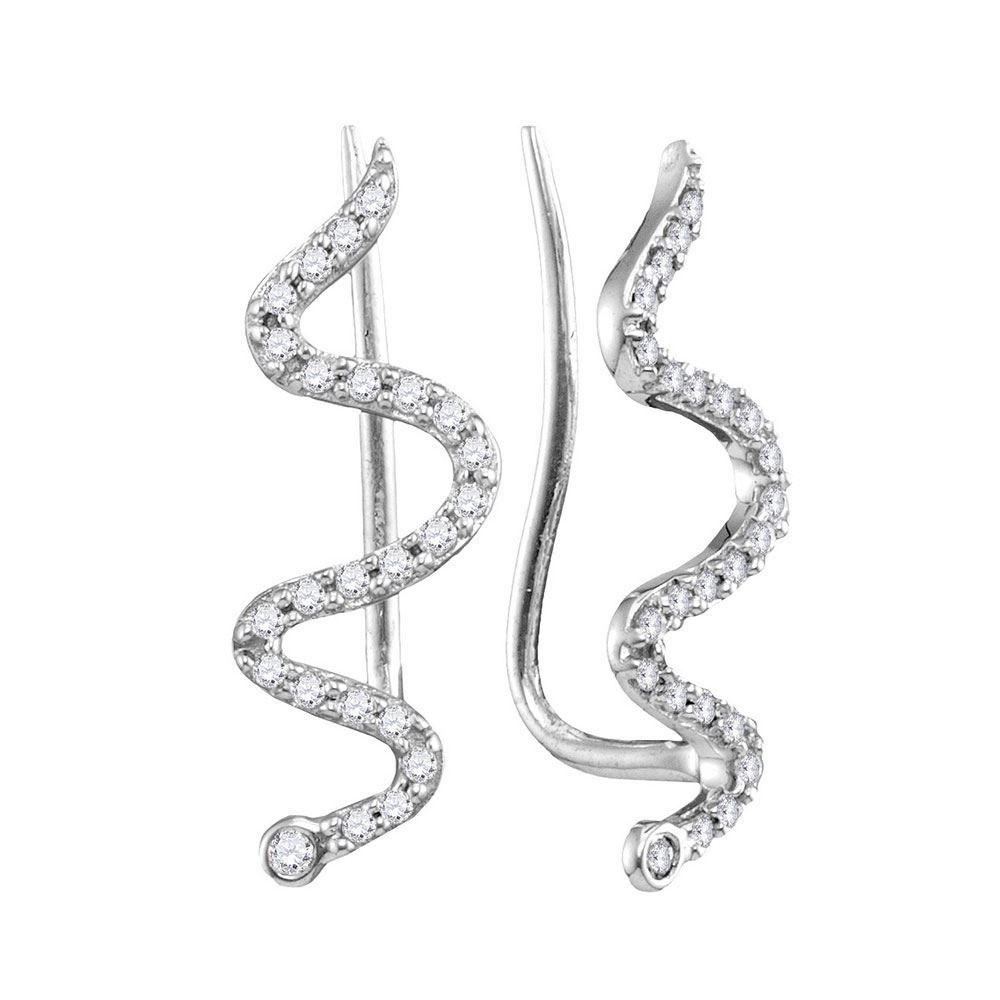 10kt White Gold Womens Round Diamond Snake Climber Earrings 1/6 Cttw.