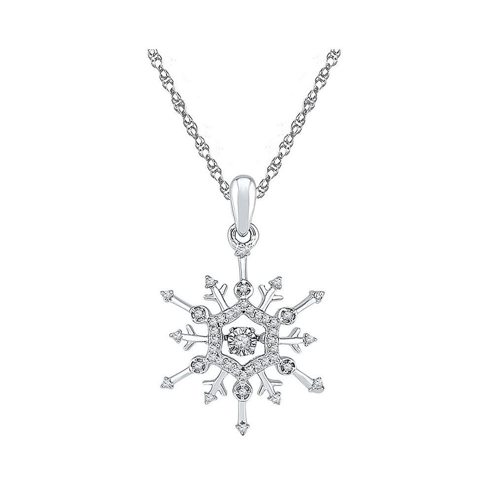 10kt White Gold Womens Round Diamond Snowflake Winter Cluster Pendant 1/6 Cttw.
