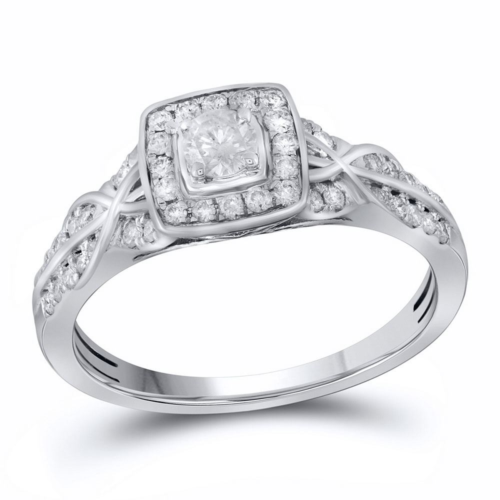 REF-48W9K ---- Round Diamond Solitaire Bridal Wedding Engagement Ring 1/2 Cttw 14kt White Gold