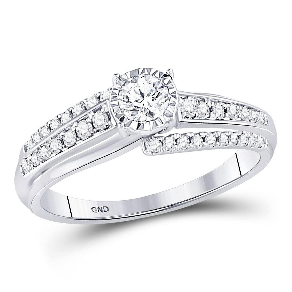 REF-54R5X ---- Round Diamond Solitaire Bridal Wedding Engagement Ring 1/2 Cttw 14kt White Gold