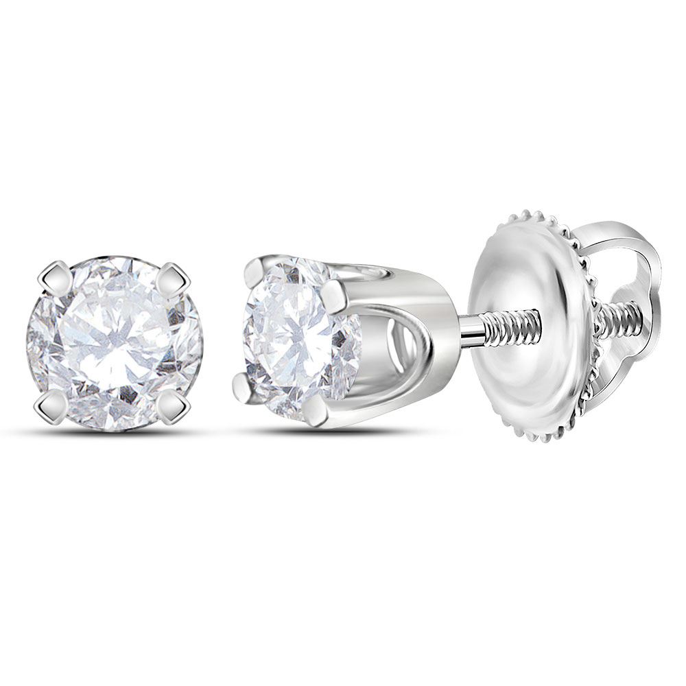 14kt White Gold Womens Round Diamond Solitaire Earrings 1/4 Cttw.
