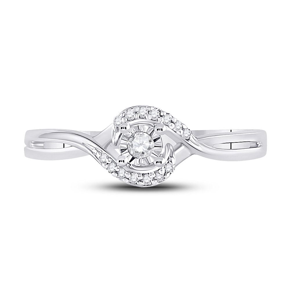10kt White Gold Womens Round Diamond Solitaire Promise Ring 1/10 Cttw.