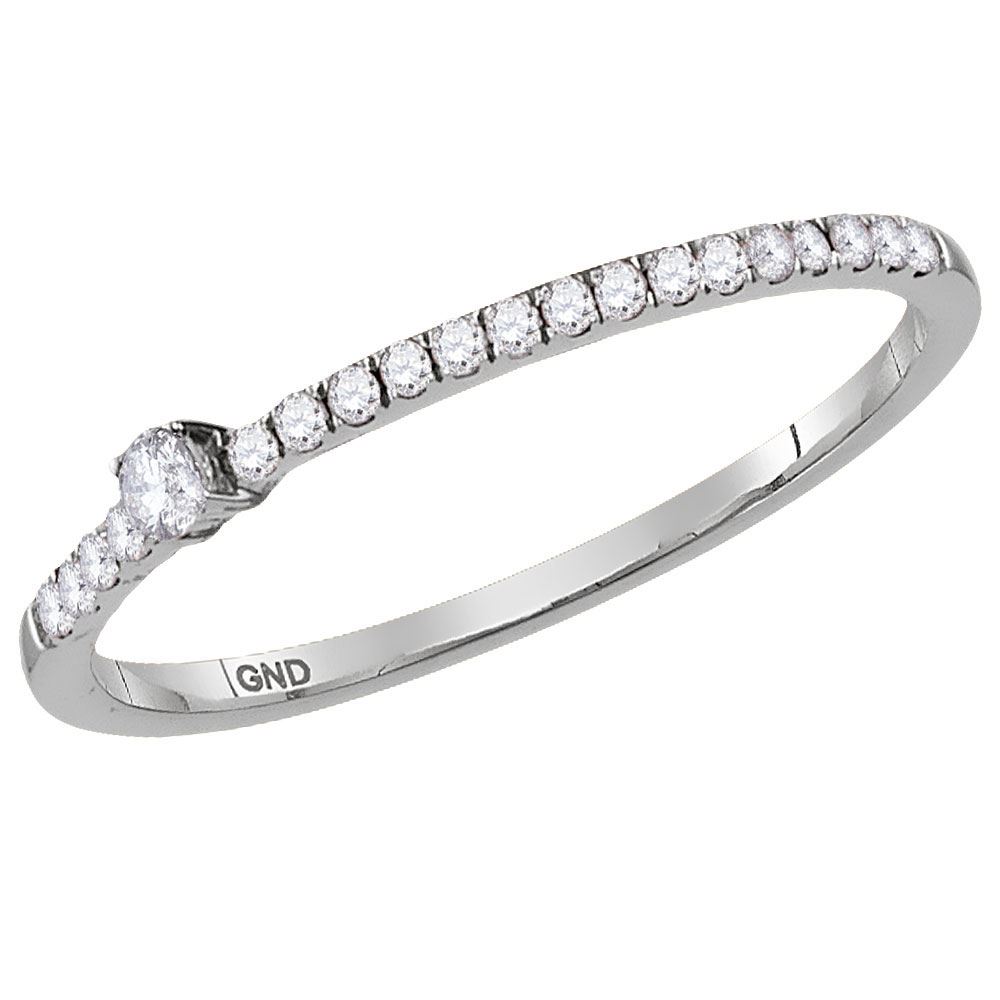 Round Diamond Solitaire Stackable Band Ring 1/6 Cttw 10KT White Gold