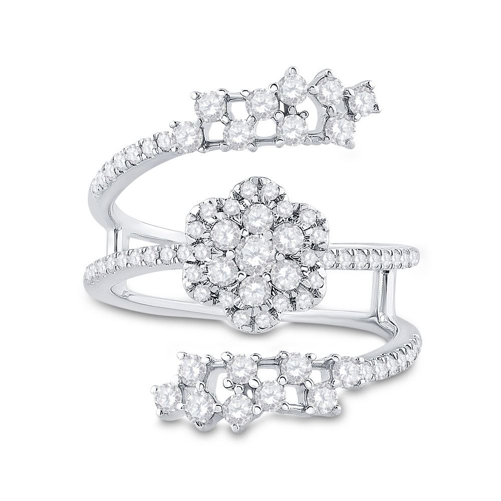 14kt White Gold Womens Round Diamond Spiral Cluster Ring 1 Cttw.