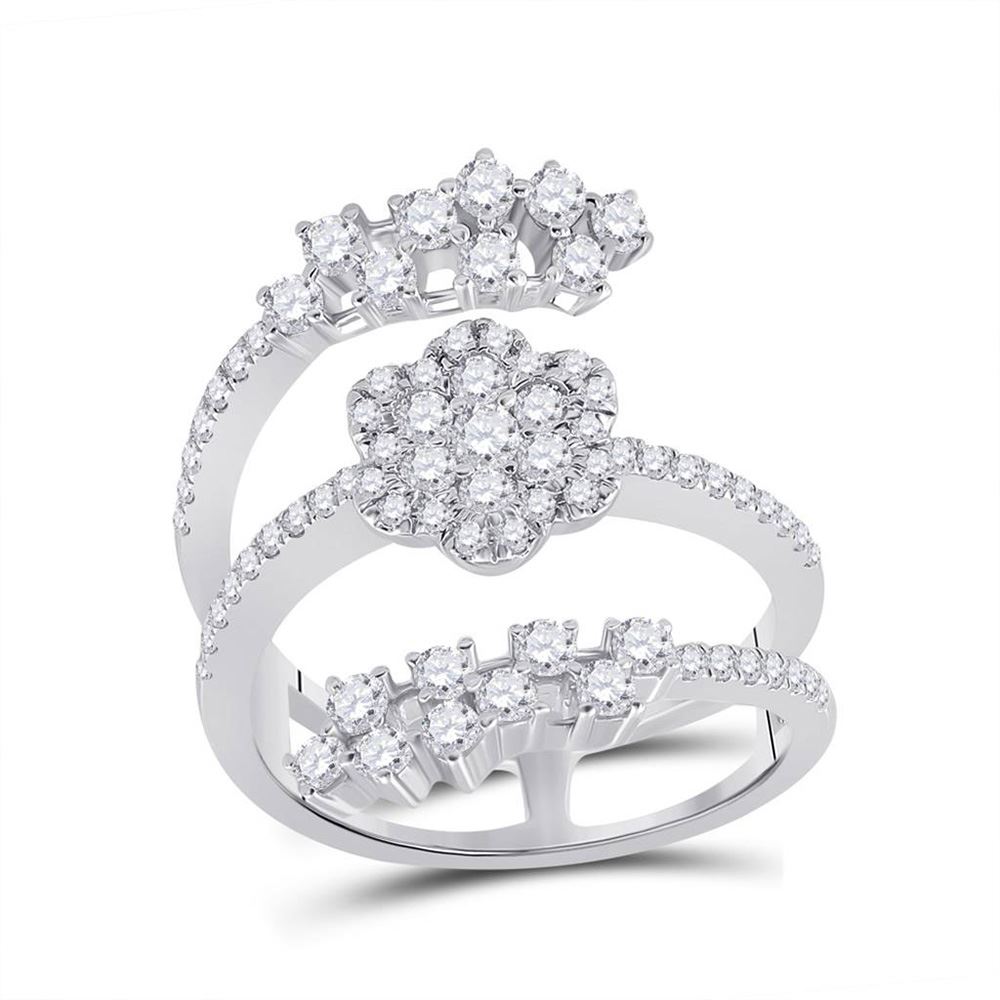 14kt White Gold Womens Round Diamond Spiral Cluster Ring 1 Cttw.