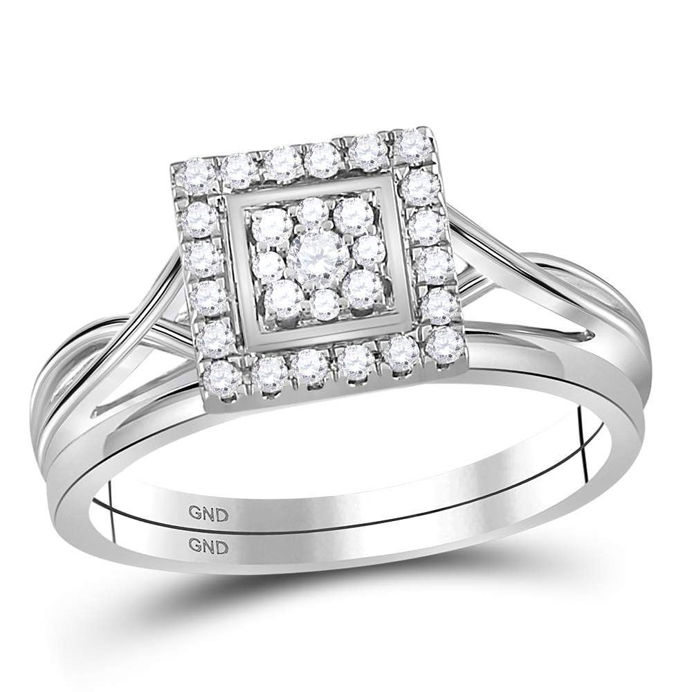 10kt White Gold Round Diamond Square Bridal Wedding Ring Band Set 1/3 Cttw