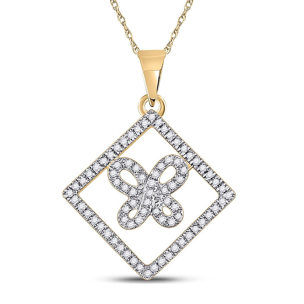 10kt Yellow Gold Womens Round Diamond Square Butterfly Pendant 1/4 Cttw.