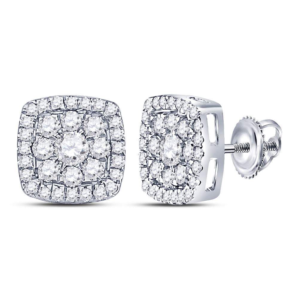 14kt White Gold Womens Round Diamond Square Cluster Earrings 1-1/4 Cttw.