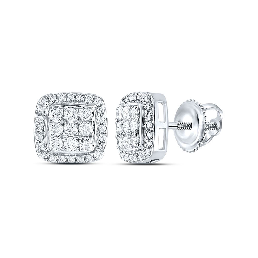 10kt White Gold Womens Round Diamond Square Cluster Earrings 1/2 Cttw.
