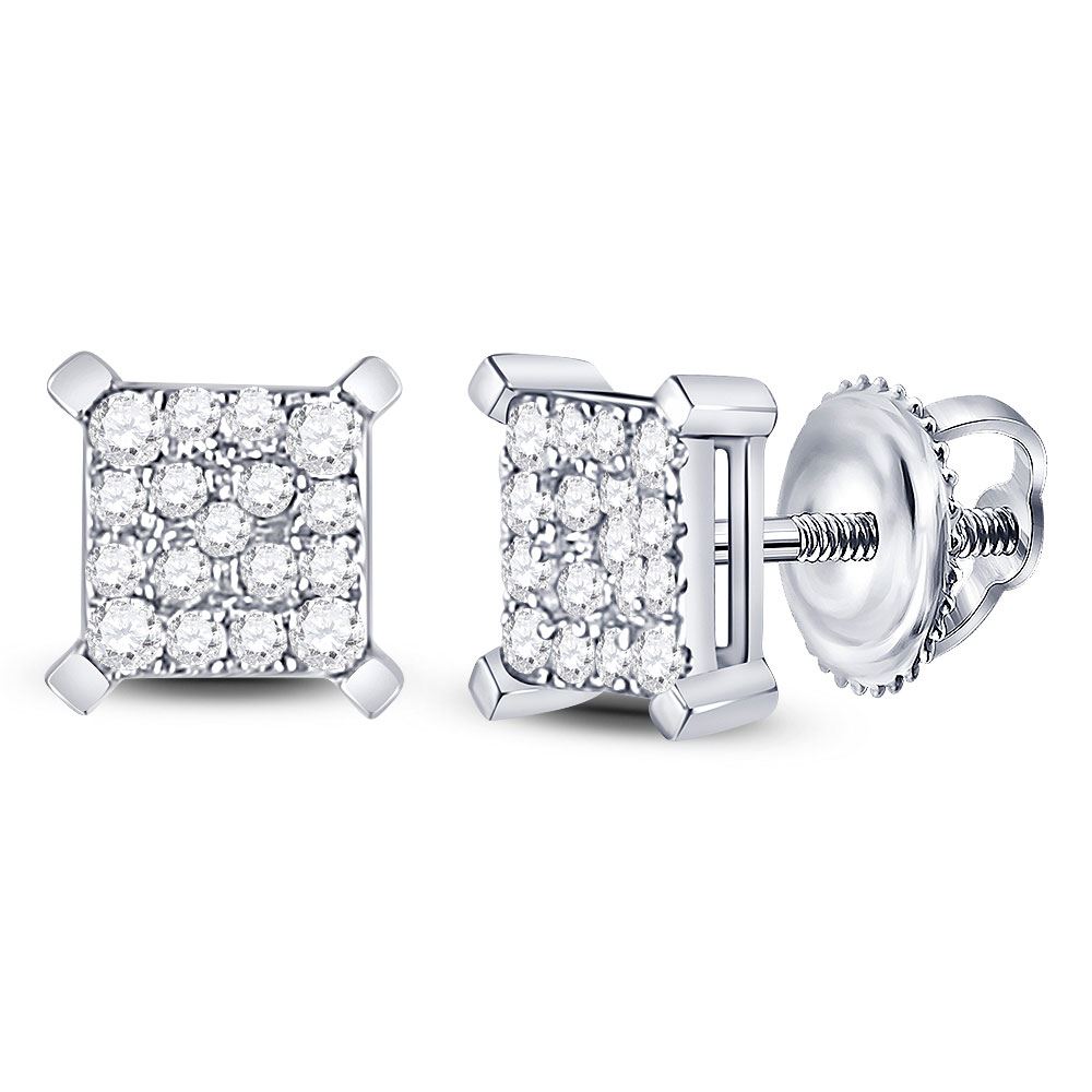 10kt White Gold Womens Round Diamond Square Cluster Earrings 1/4 Cttw.