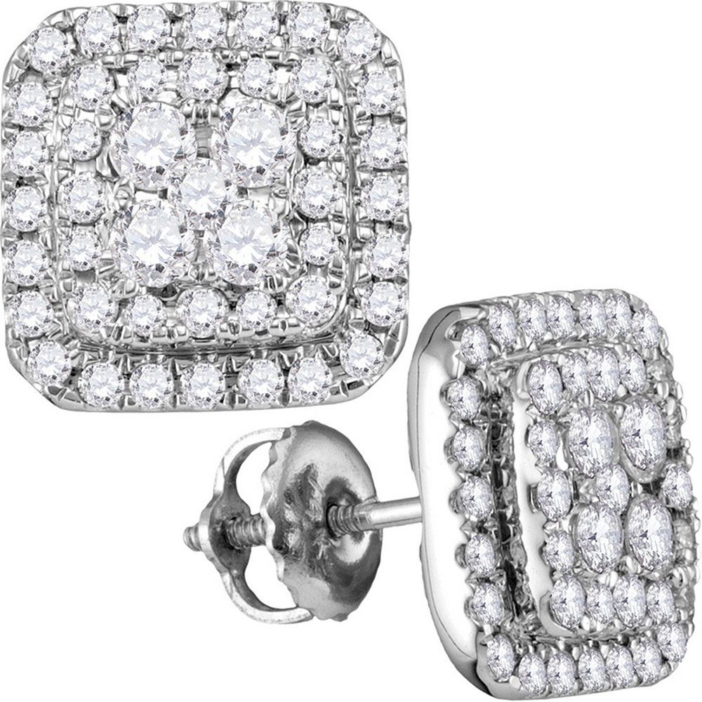 14kt White Gold Womens Round Diamond Square Cluster Earrings 1 Cttw.