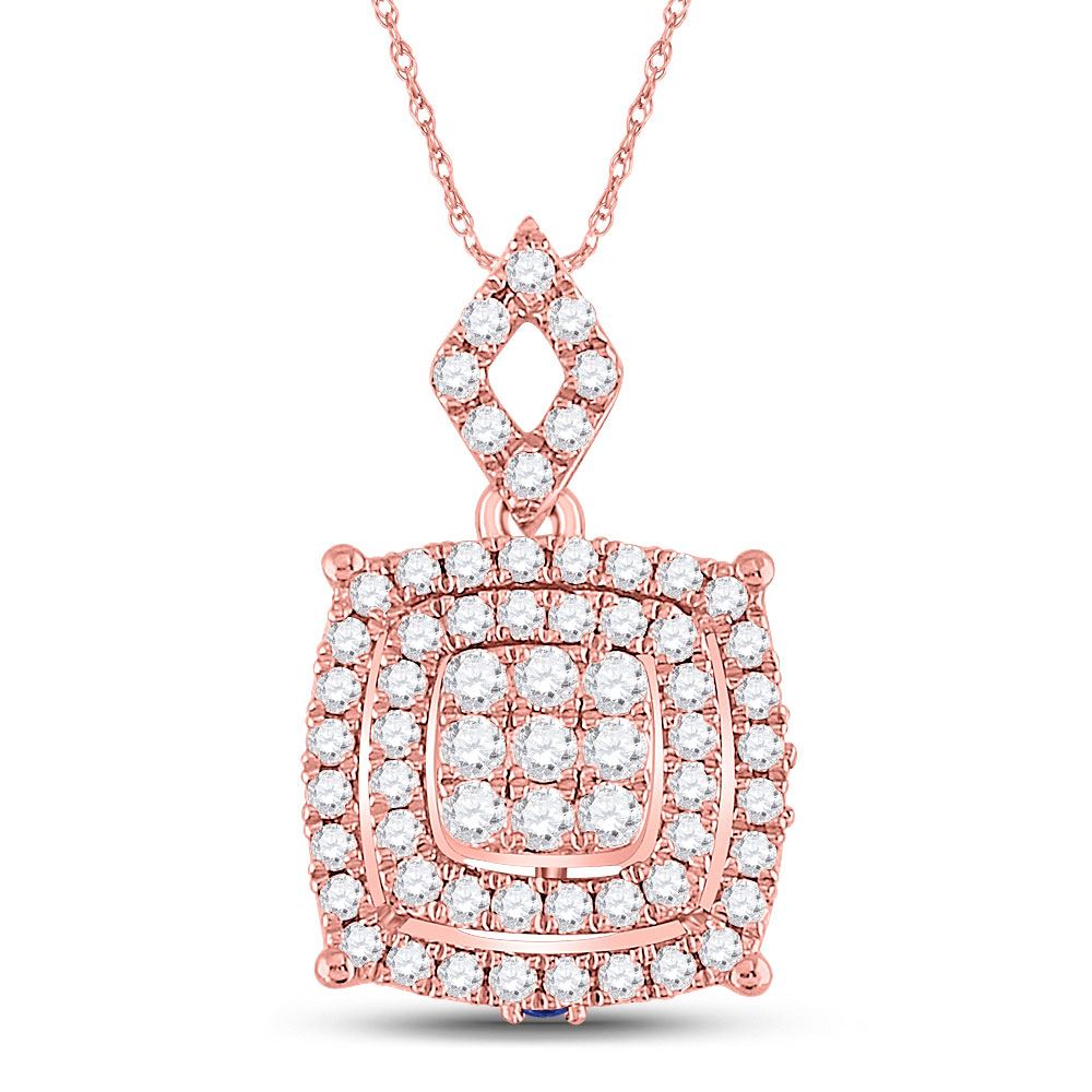 14kt Rose Gold Womens Round Diamond Square Cluster Pendant 1/2 Cttw.