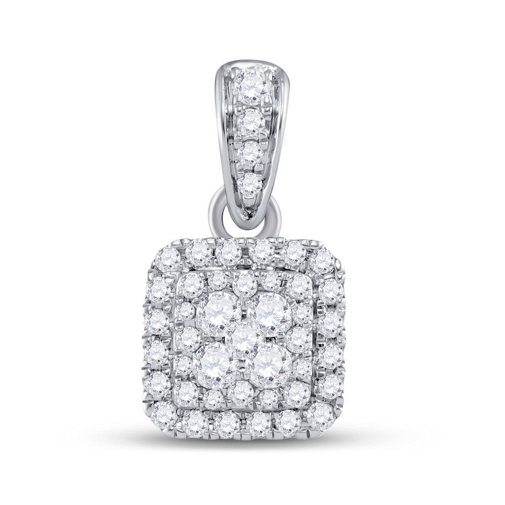 Round Diamond Square Cluster Pendant 1/2 Cttw 14KT White Gold