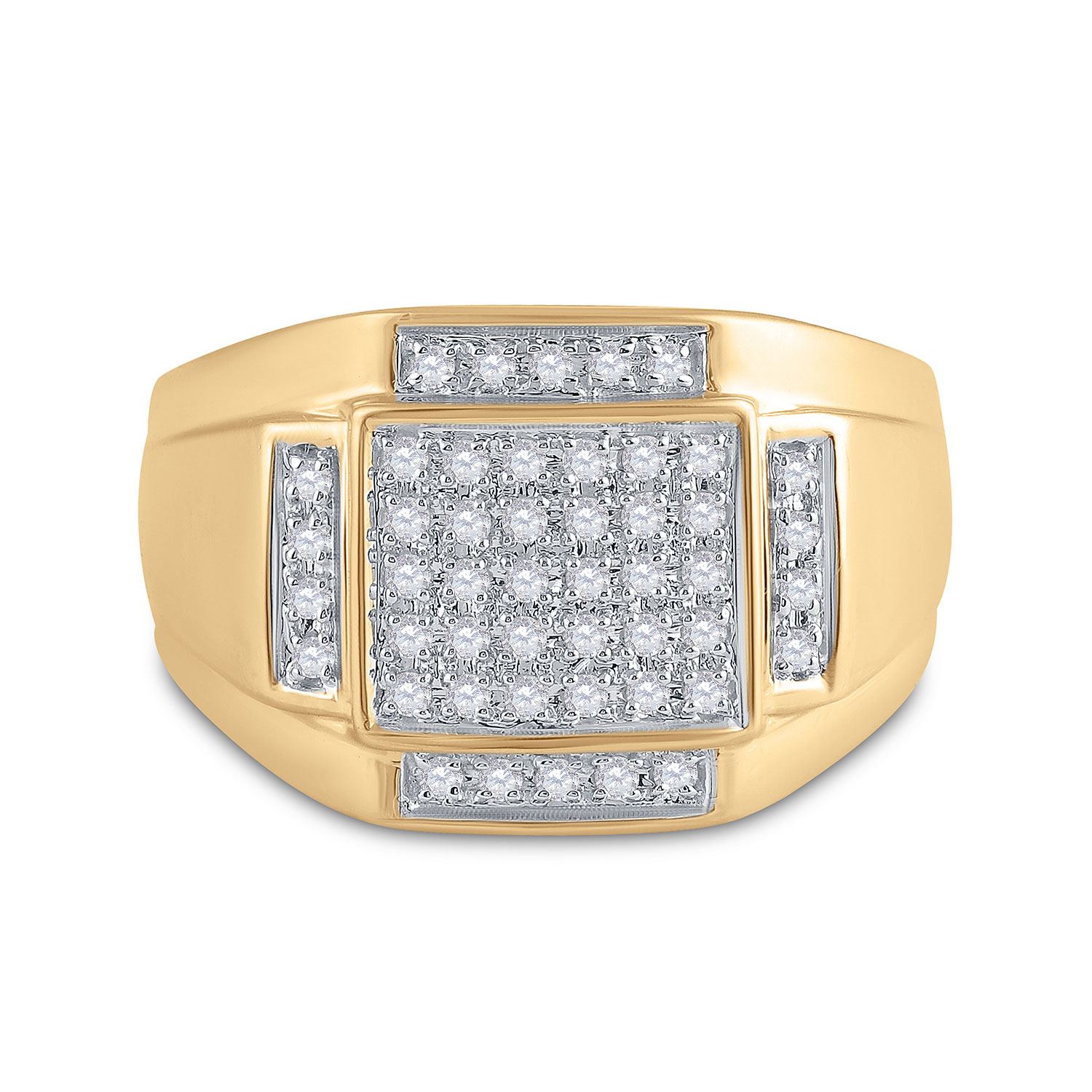 10kt Yellow Gold Mens Round Diamond Square Cluster Ring 1/3 Cttw.