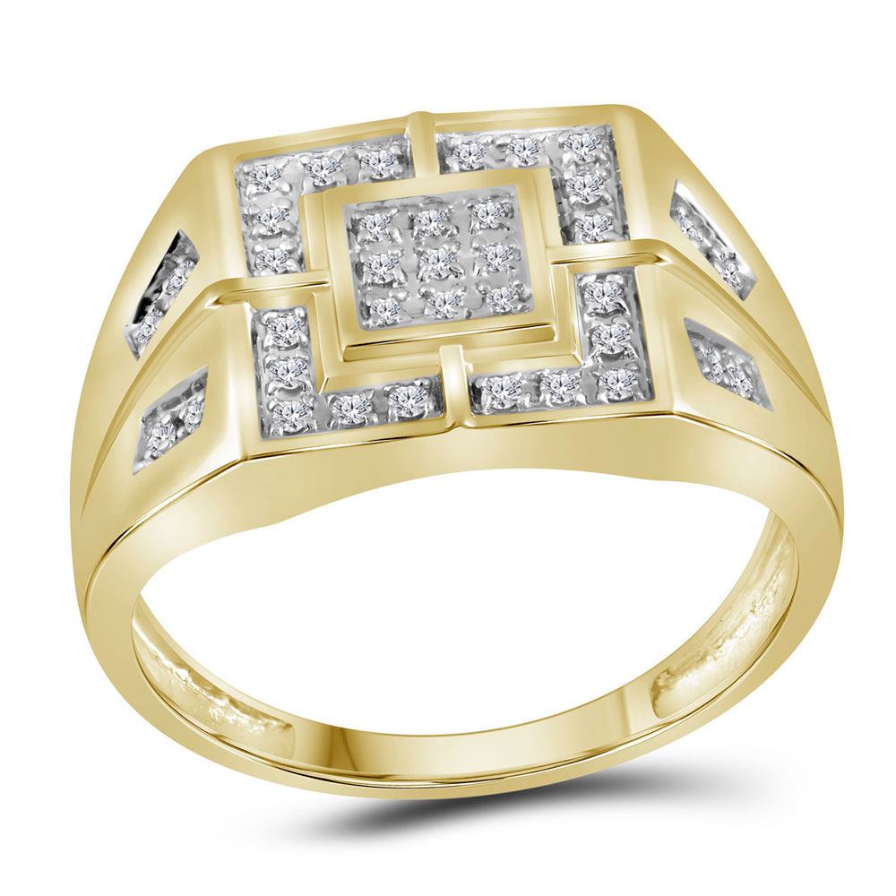 10kt Yellow Gold Mens Round Diamond Square Cluster Ring 1/4 Cttw.