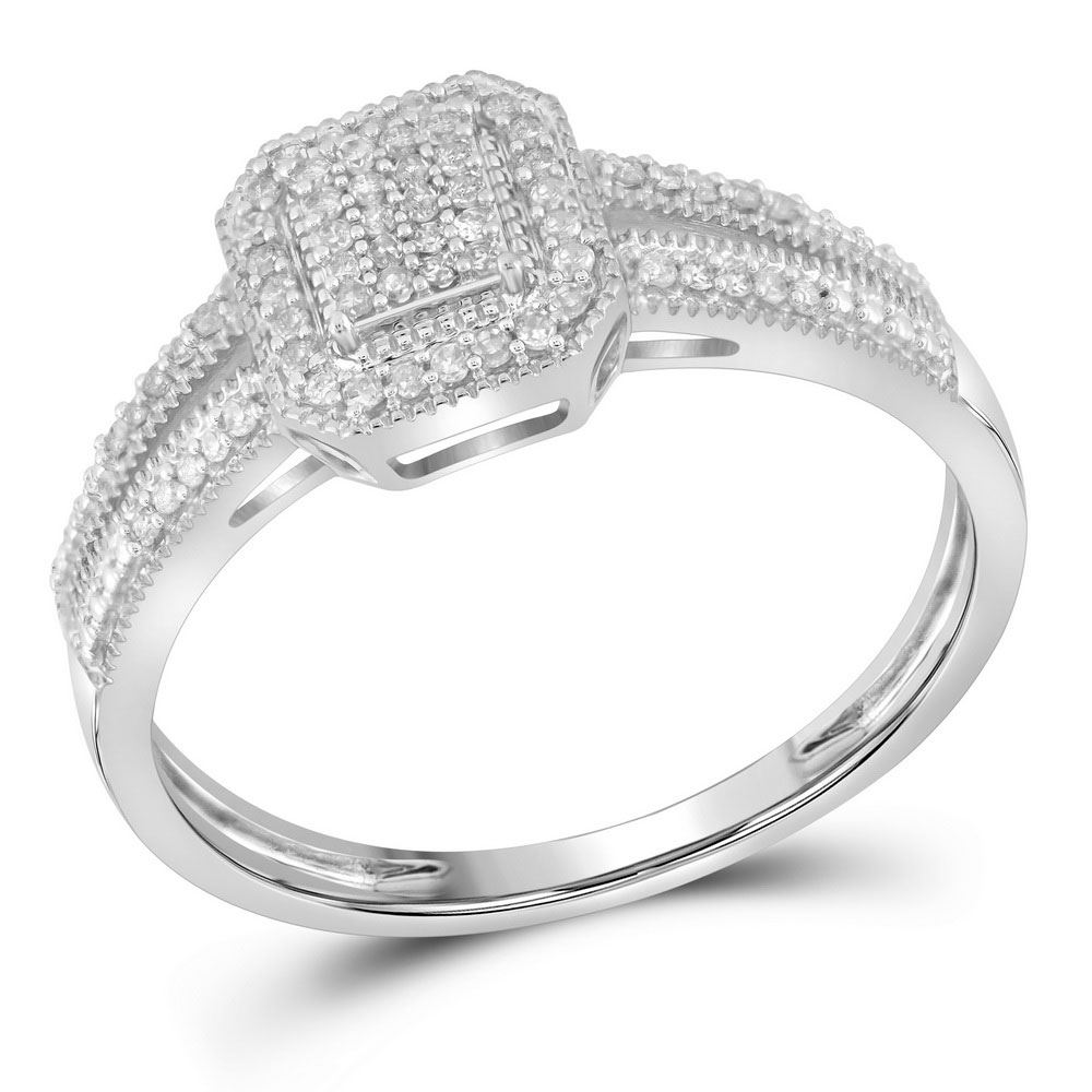 10kt White Gold Womens Round Diamond Square Cluster Ring 1/6 Cttw.