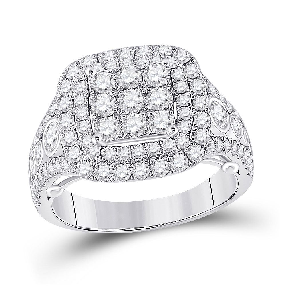 14kt White Gold Womens Round Diamond Square Cluster Ring 1-7/8 Cttw.