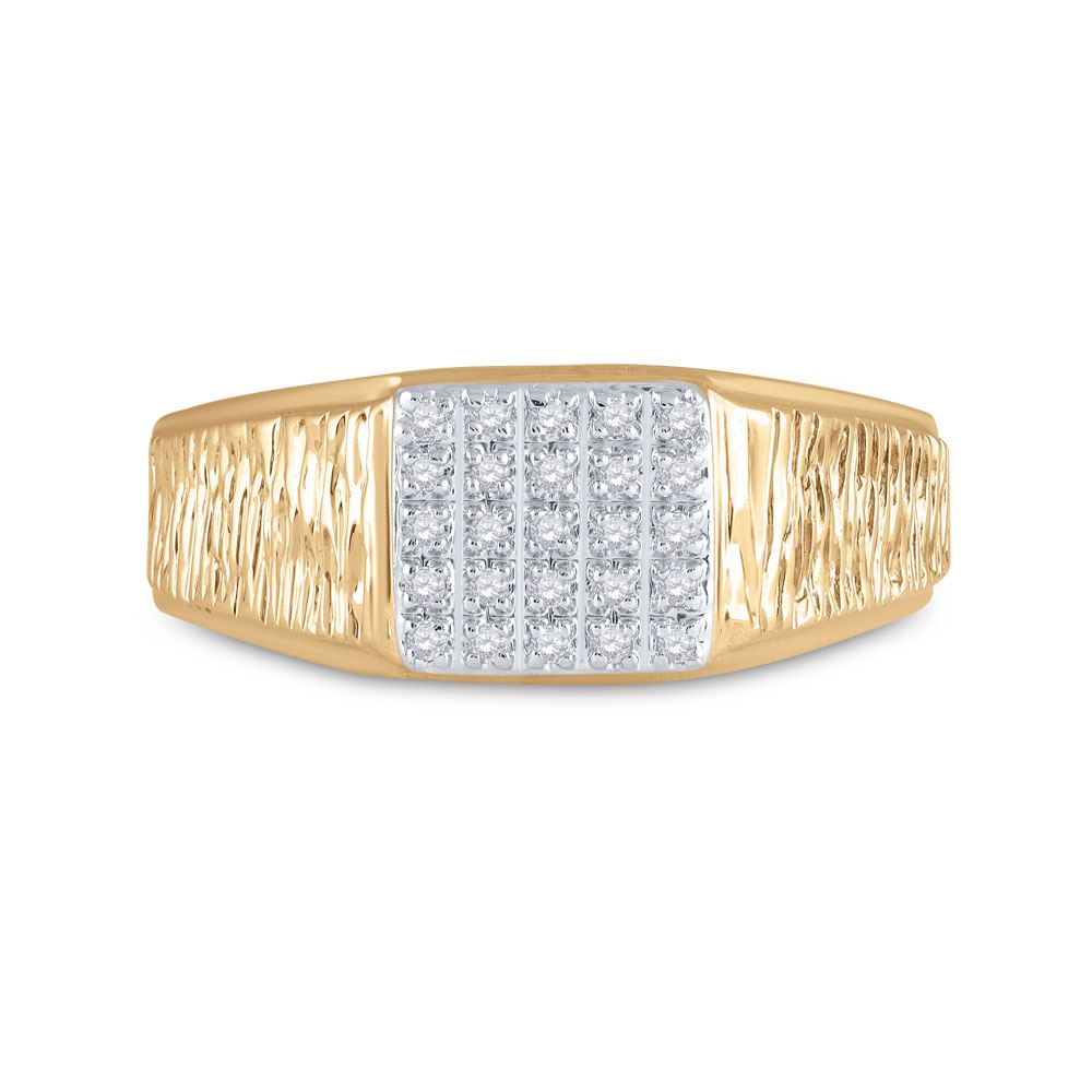 10kt Yellow Gold Mens Round Diamond Square Cluster Ring 1/8 Cttw.