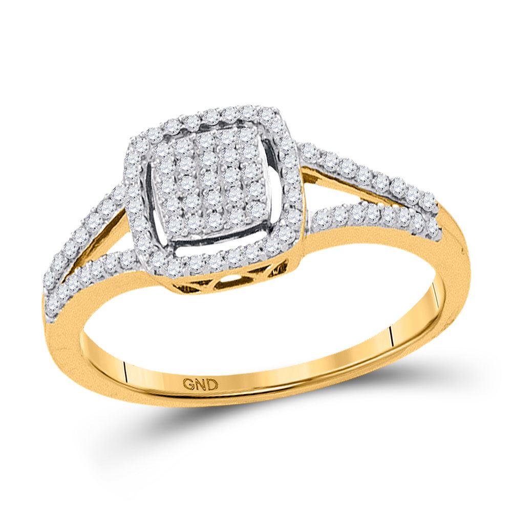 10kt Yellow Gold Womens Round Diamond Square Cluster Split-shank Ring 1/4 Cttw.