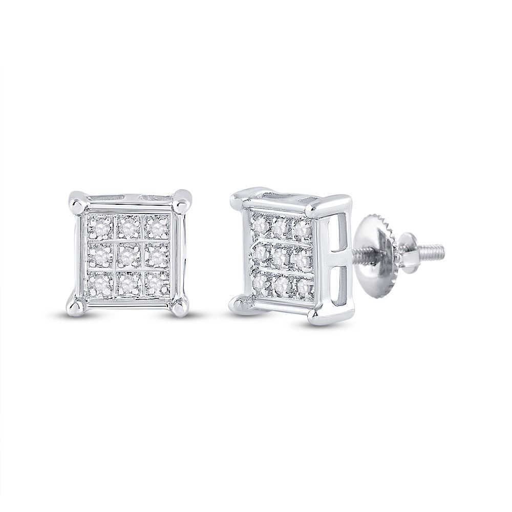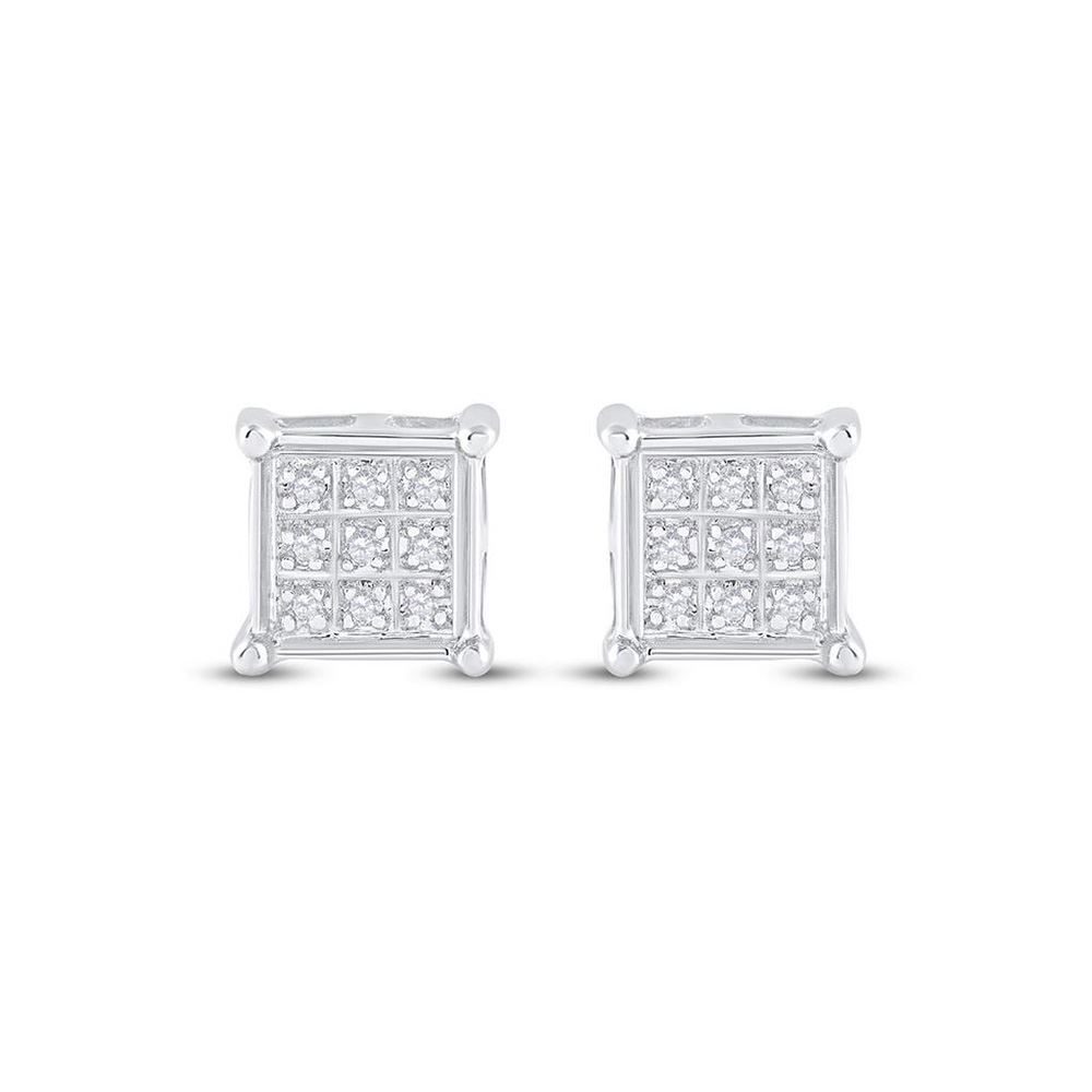 10kt White Gold Womens Round Diamond Square Earrings 1/20 Cttw.