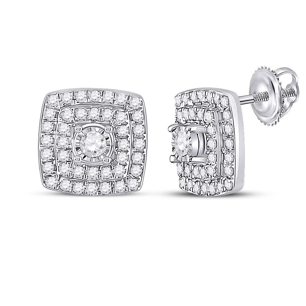 10kt White Gold Womens Round Diamond Square Earrings 1/4 Cttw.