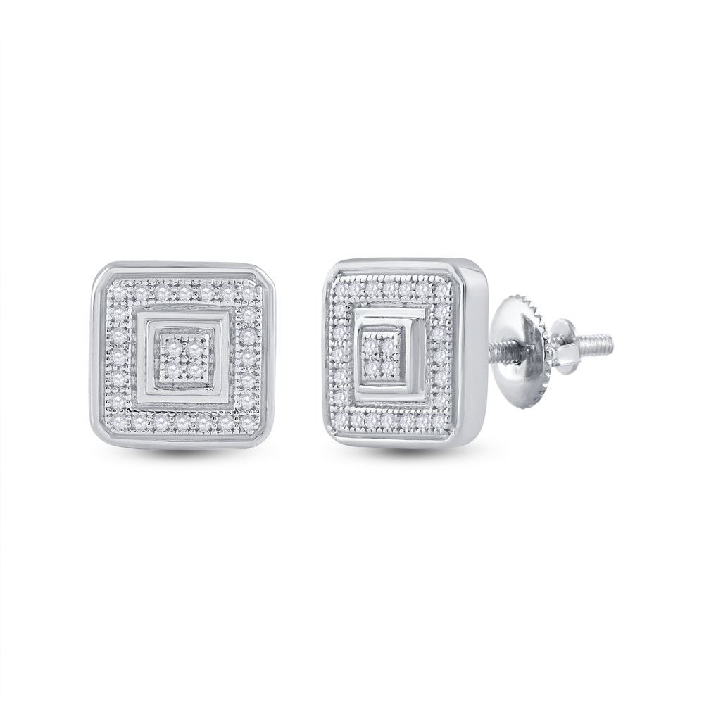 10kt White Gold Womens Round Diamond Square Earrings 1/6 Cttw.