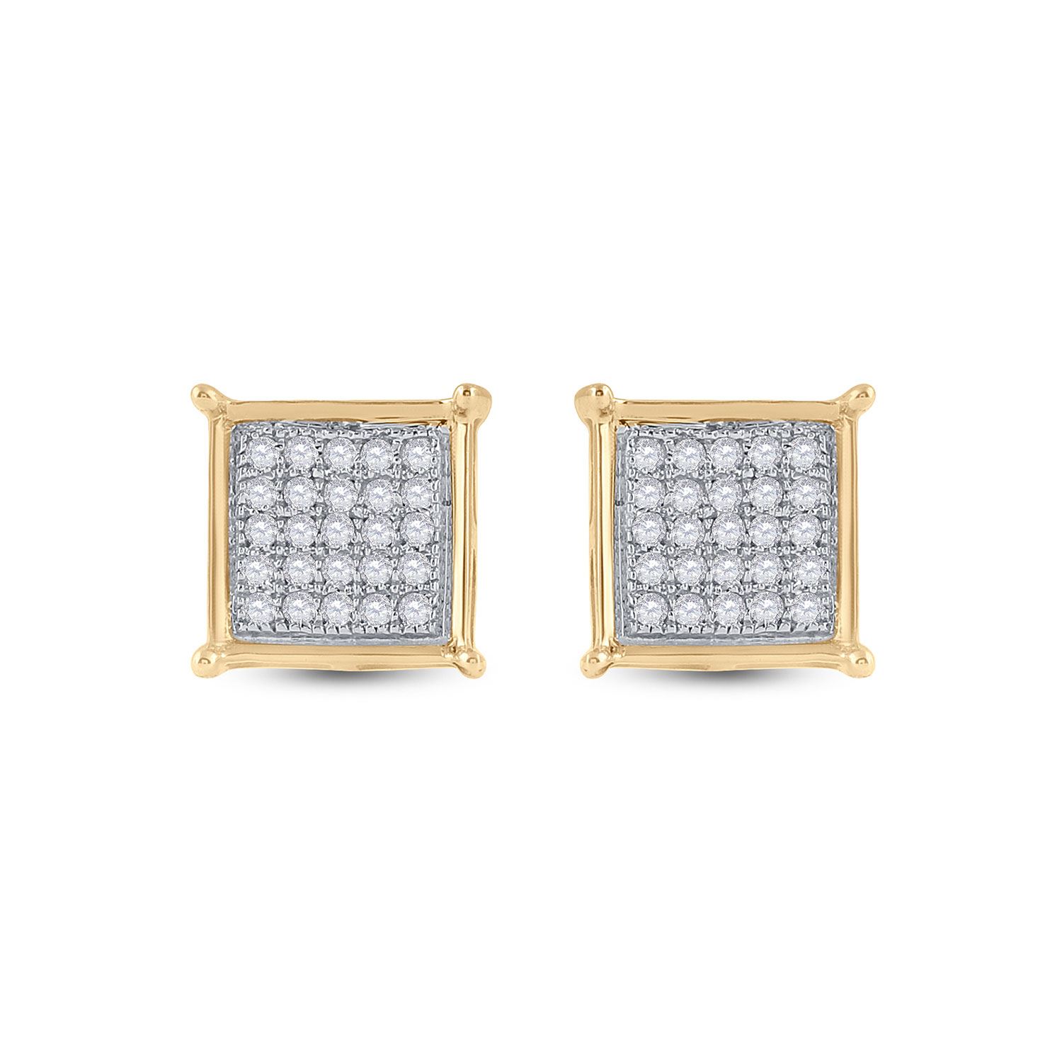 10kt Yellow Gold Womens Round Diamond Square Earrings 1/6 Cttw.
