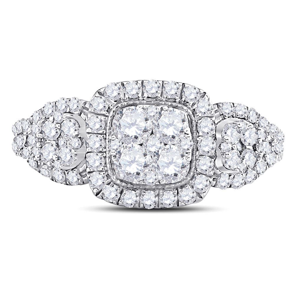 10kt White Gold Womens Round Diamond Square Halo Cluster Ring 1-1/4 Cttw.