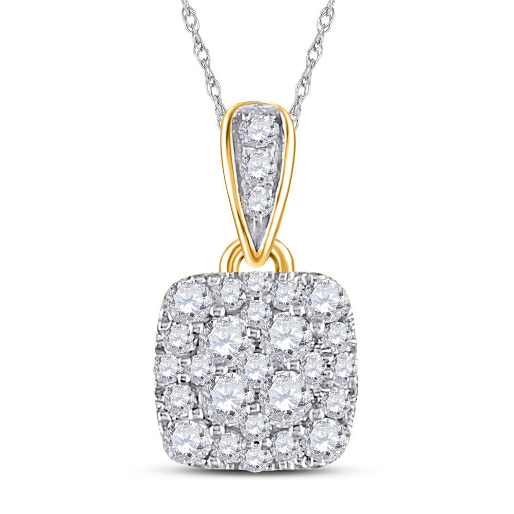 14kt Yellow Gold Womens Round Diamond Square Pendant 1/2 Cttw.