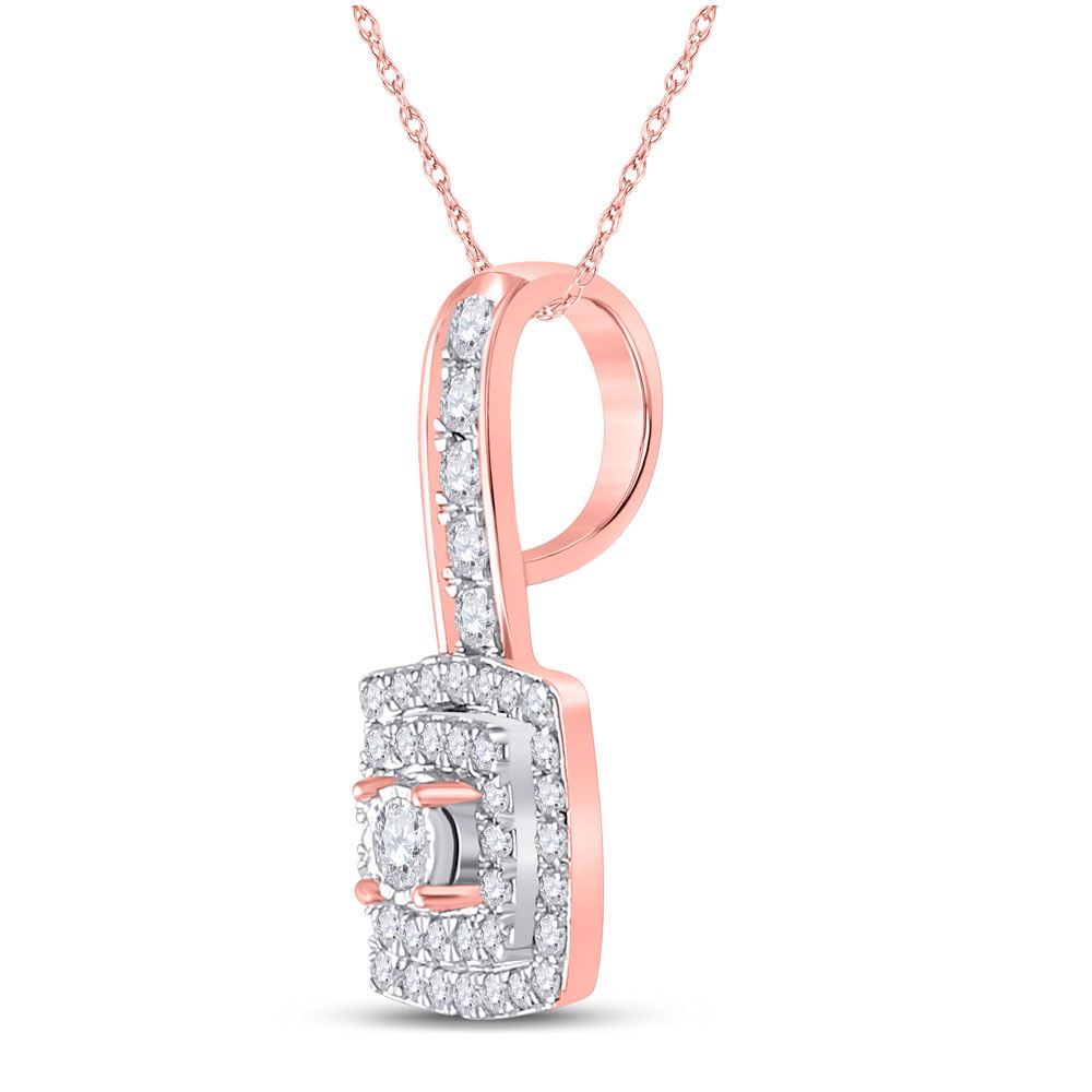 10kt Rose Gold Womens Round Diamond Square Pendant 1/3 Cttw.