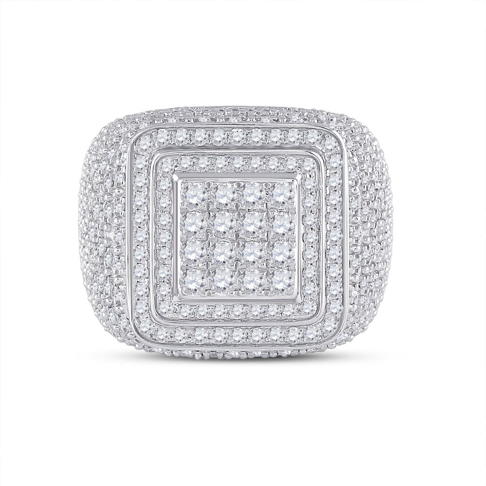 14kt White Gold Mens Round Diamond Square Ring 1-7/8 Cttw.