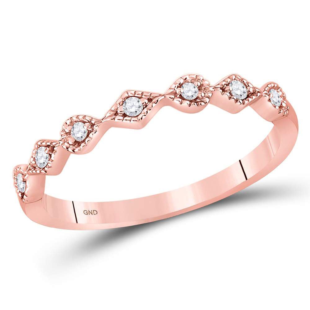 14kt Rose Gold Womens Round Diamond Stackable Band Ring 1/10 Cttw.